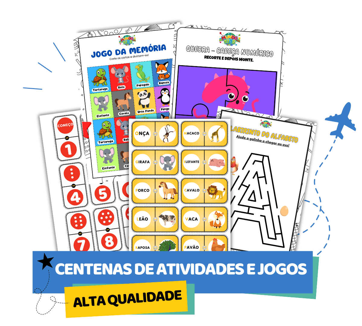 Dê ao seu filho(a) a chance de aprender brincando e se desenvolver de forma saudável, longe do vício das telas. Garanta seu Kit Completão agora!